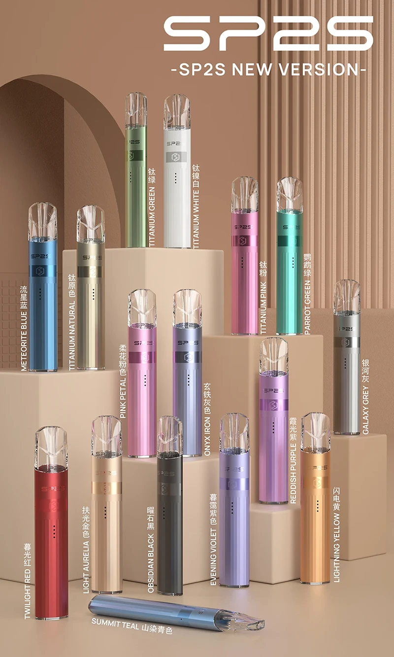 SP2S電子菸主機新款 SP2S LEGEND 升級版鈦色主機以電鍍鈦色工藝打造,呈現迷人的金屬光澤,配合鋁合金與 PCTG 材質,兼具輕便與耐用。這款主機的精緻外觀設計,為追求時尚與高端的用戶提供專屬選擇,充分展現個人風格。